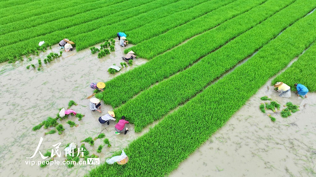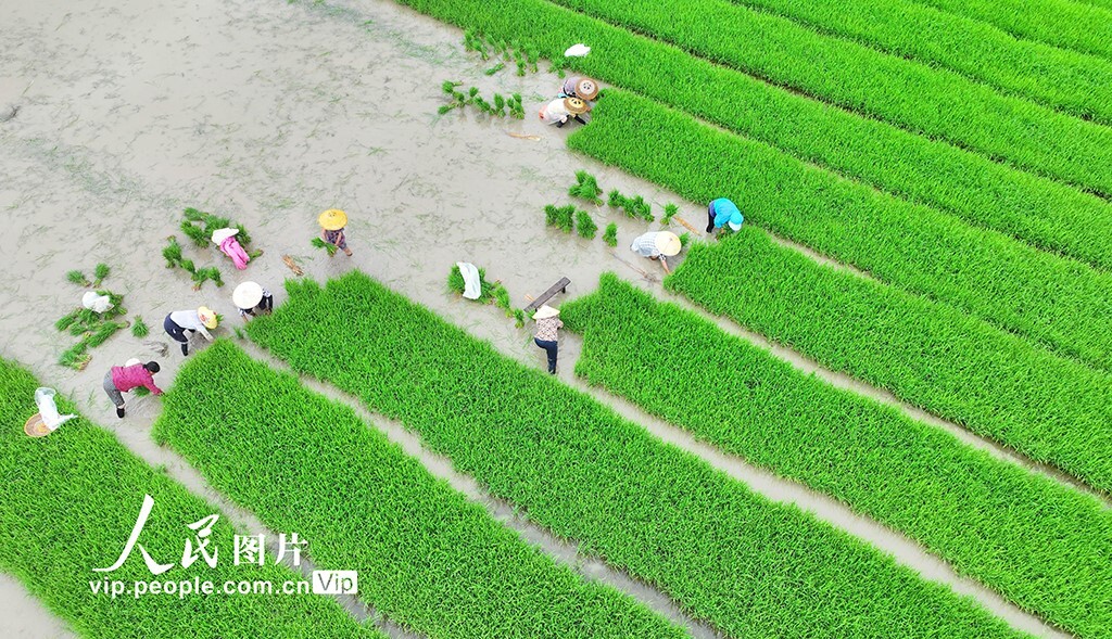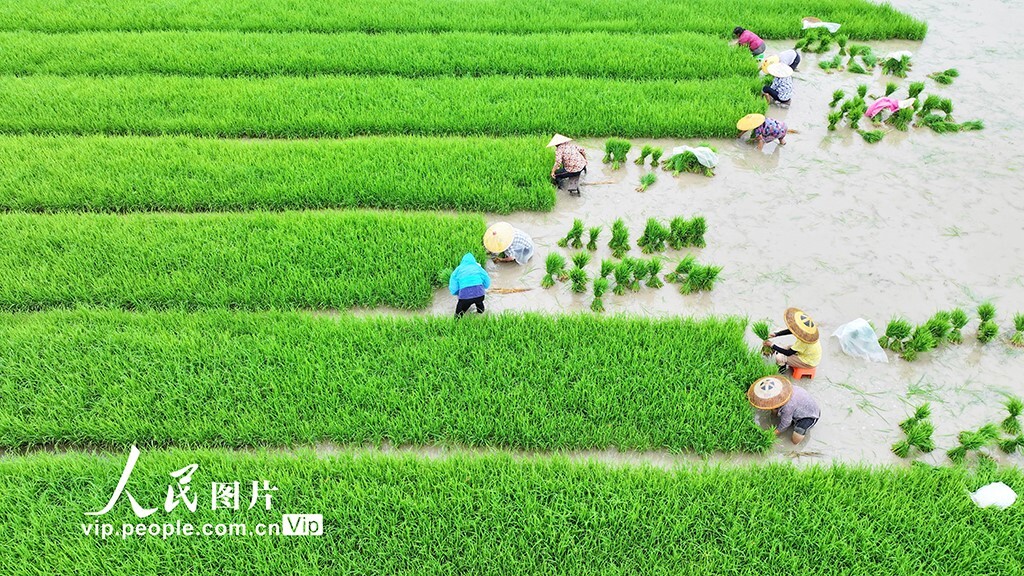 22 июля 2025 года наступит период Великой солнечной жары. Фермеры уезда Дао города Юнчжоу провинции Хунань вовсю используют сезон полевых работ и активно сажают рис на рисовых полях.