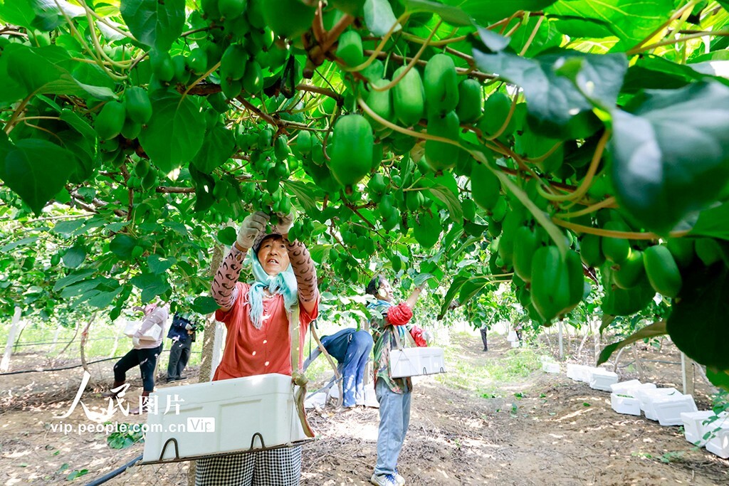 В разнаре сбор урожая киви в городе Таншань провинции Хэйбэй.