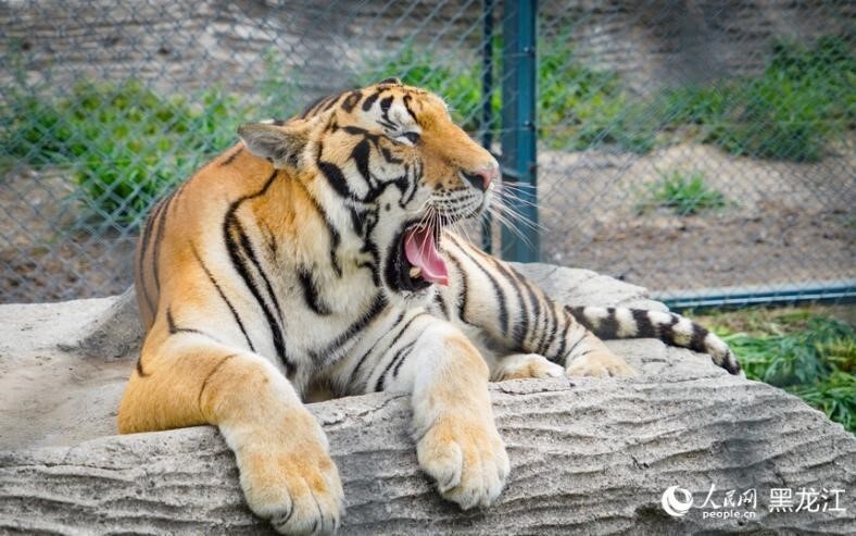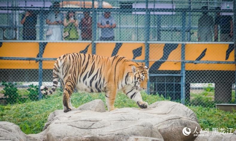 29 июля отмечается 15-й Всемирный день тигра. В лесопарке "Хэйлунцзянский сибирский тигр" в городе Харбин крепкий сибирский тигр неторопливо прогуливается и отдыхает.В экскурсионном автобусе туристы один за другим доставали свои фотоаппараты или мобильные телефоны, взволнованно снимая происходящее.Окошко для кормления в окне автомобиля позволяет посетителям наблюдать за амурским тигром вблизи, наблюдать за кормлением амурского тигра лицом к лицу и ощутить силу тигриного взгляда.