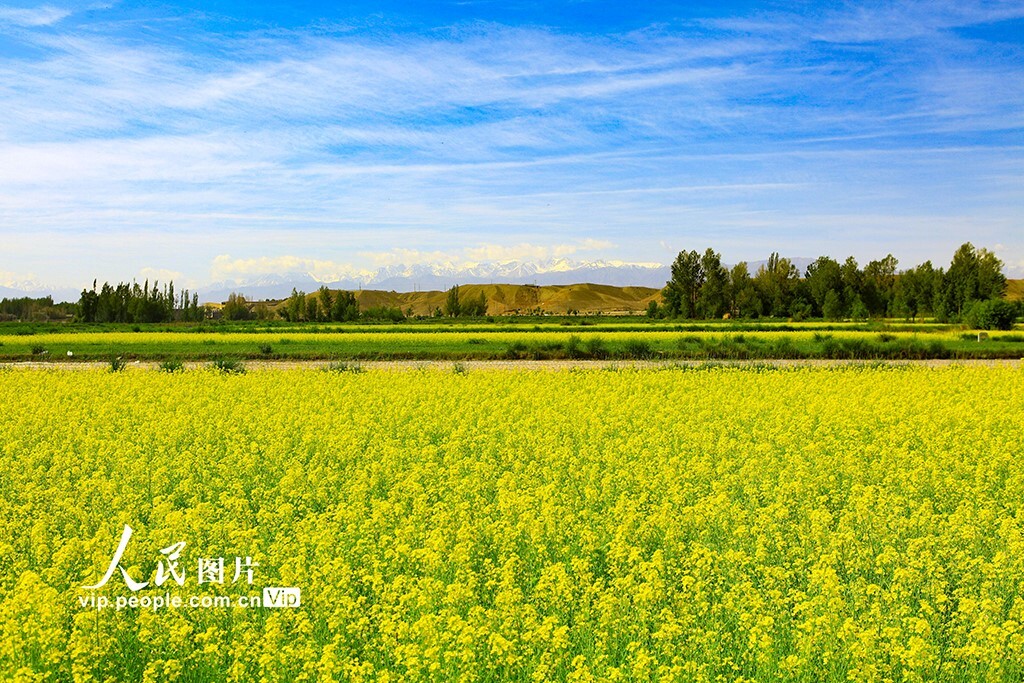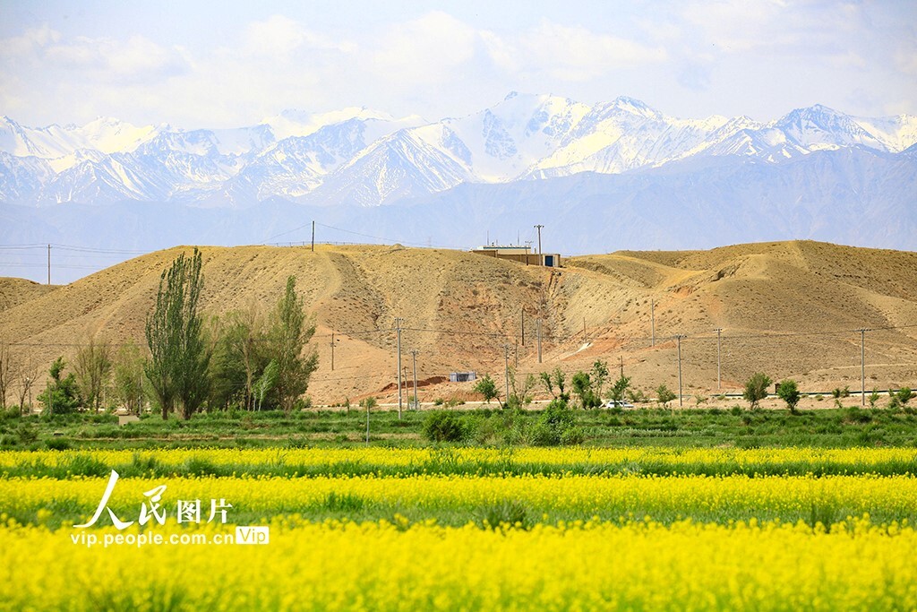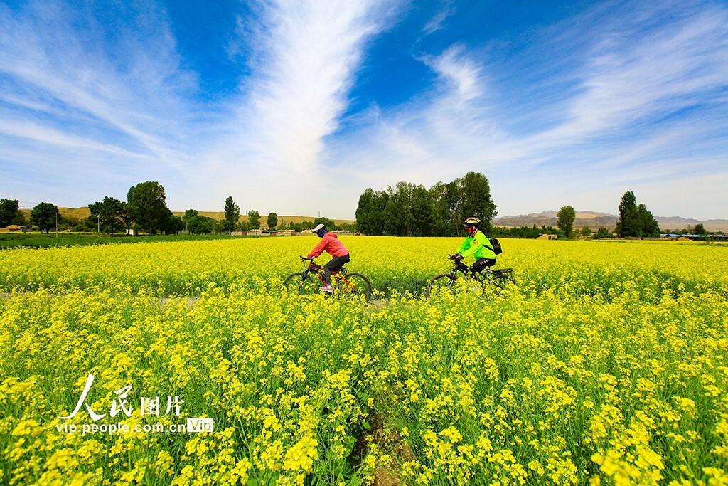31 мая 2025 года у подножия Великой Китайской стены в деревне Цзяюйгуань, город Юцюань, город Цзяюйгуань, провинция Ганьсу, расцвели цветы рапса, привлекая множество горожан и туристов поиграть, сфотографироваться и зарегистрироваться.
