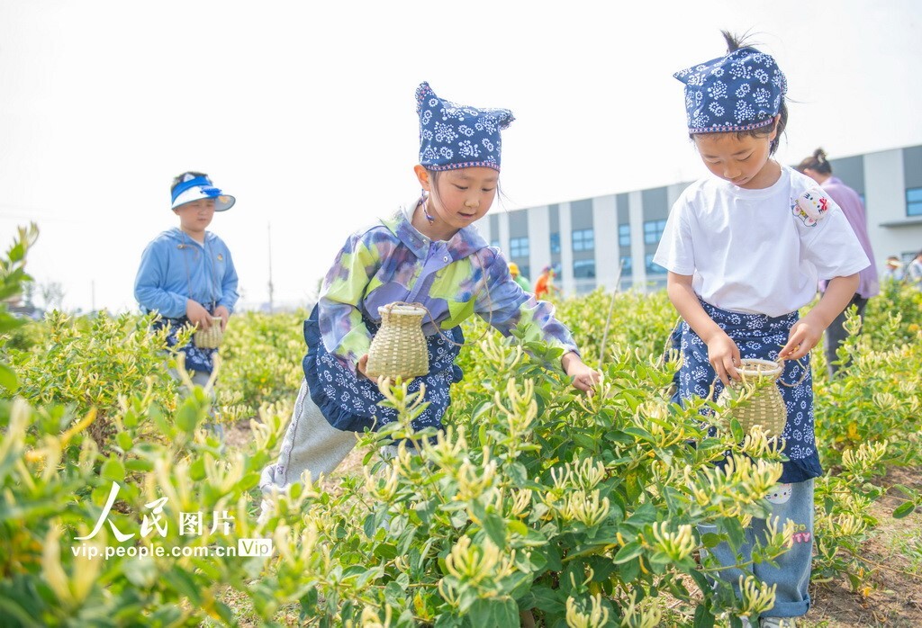 24 мая 2025 года на базе по посадке жимолости в городке Цаоцзи города Суцянь провинции Цзянсу дети участвовали в сборе жимолости.