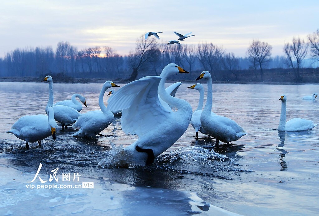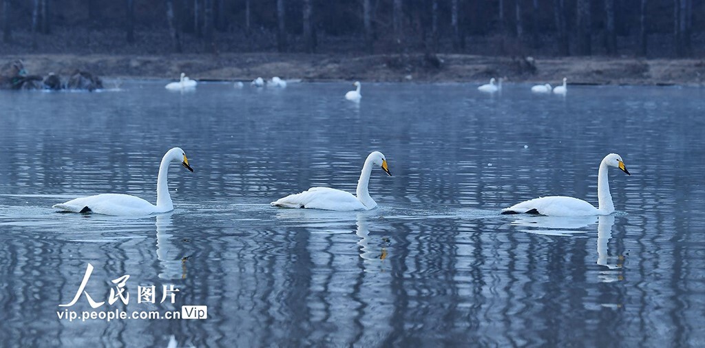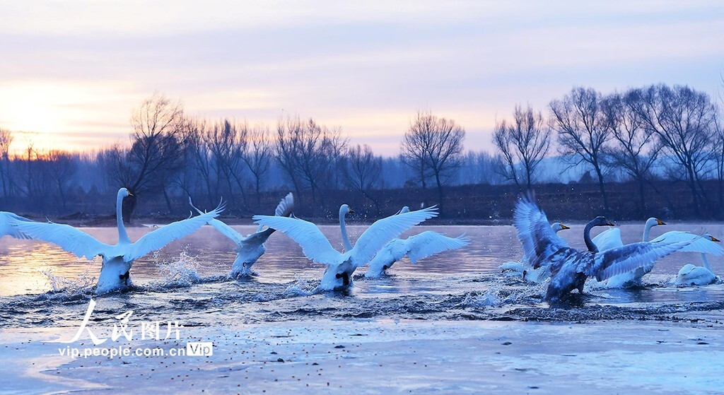 5 января 2025 года лебеди свободно кормились в Лебединой бухте, Хунцунь, поселке Наньбаджяцзы, городе Бэйпяо, городе Чаоян провинции Ляонин.В тот же день более 600 больших и маленьких лебедей собрались в Лебединой бухте, Хунчунь, в городке Нанбаджиязи, с прекрасной экологической обстановкой. Они кормились и играли здесь, хлопая крыльями и высоко взлетая, создавая красивый пейзаж в сельской местности, привлекая множество туристов, желающих зарегистрироваться и сфотографироваться.